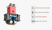 より大型のボリュームサイズ(300mm x 250mm x 520mm)の造形出力、より多彩なフィラメントに対応した高温ノズル・全金属製トリプルエクストルーダーを搭載。ノズル温度範囲は350℃まで対応になりました。