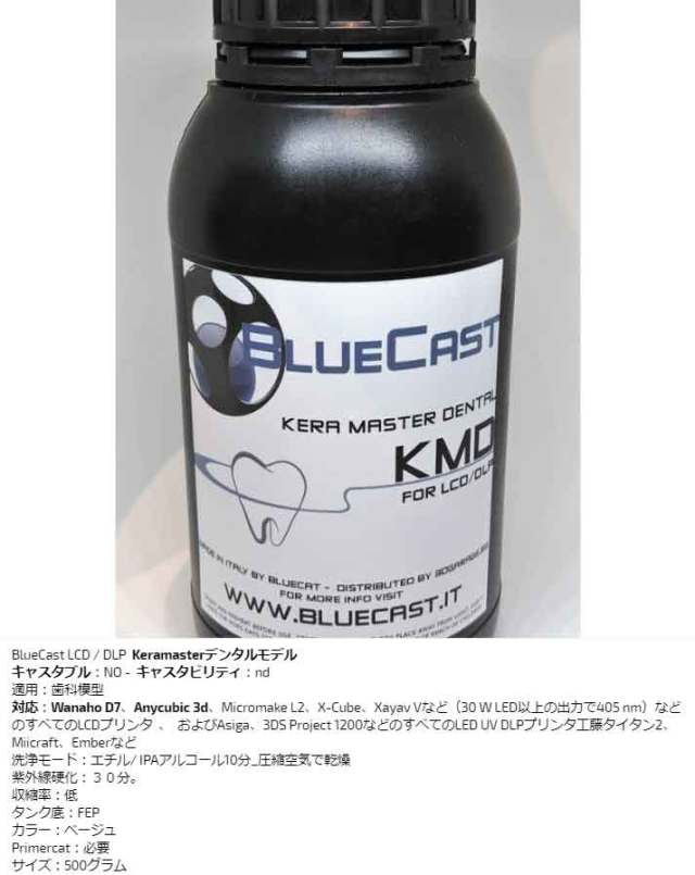 BlueCast歯科モデルLCD / DLP レジン 光造形LCD/DLPプリンター用 (Wanaho D7、 Anycubic 3D、Zortrax、Prusa、Micromake L2、X-Cube、Xayav VなどのすべてのLCDプリンタ (30 W LED以上405 nm)) BlueCast KMD LCD/DLP 0.5 kg