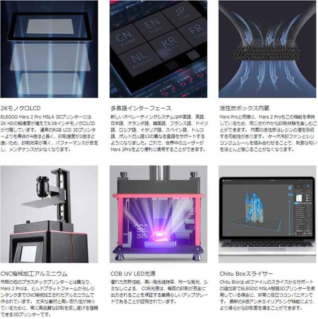 ELEGOO Mars 2 Pro Mono MSLA 6.08インチ2KモノクロLCD 印刷サイズ129 * 80 * 160mm 3Dプリンター 【正規販売代理店】