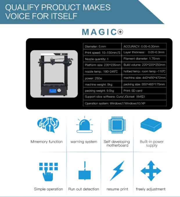 JGMaker MagicオールメタルフレームDIY 3Dプリンターキット220 * 220 * 250mm印刷サイズ/フィラメント切れ検出/停電再開機能