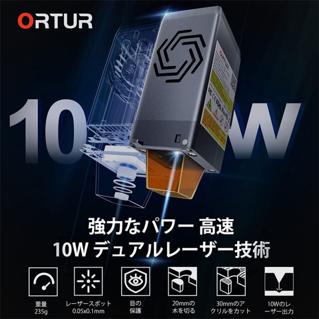 ORTUR/オルトゥール レーザーマスター 3 レーザー彫刻機 10W高出力 20,000mm/分 彫刻速度 400mm×400mm作業領域 高安定性 ブザー付き 移動停止 火炎警報