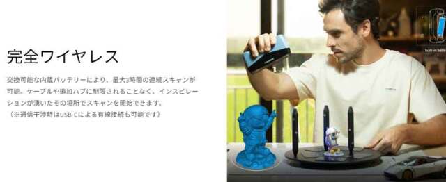 SHINING 3D EINSTAR 2 ワイヤレス設計 レーザー3Dスキャナー、17本のパラレルブルーレーザーとVCSEL赤外線ライトをサポート3Dスキャン、小型から大型オブジェクト対応可、最大90FPS高速スキャン効率