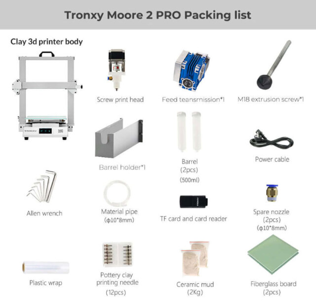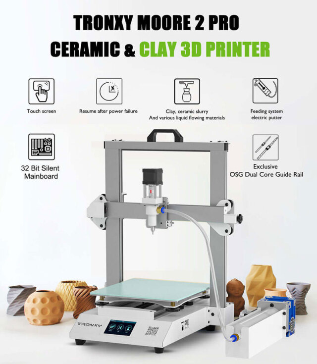 Tronxy Moore 2 Pro セラミック & クレイ 3d プリンター 255mm*255mm*260mm フィードシステム付き 電動パター